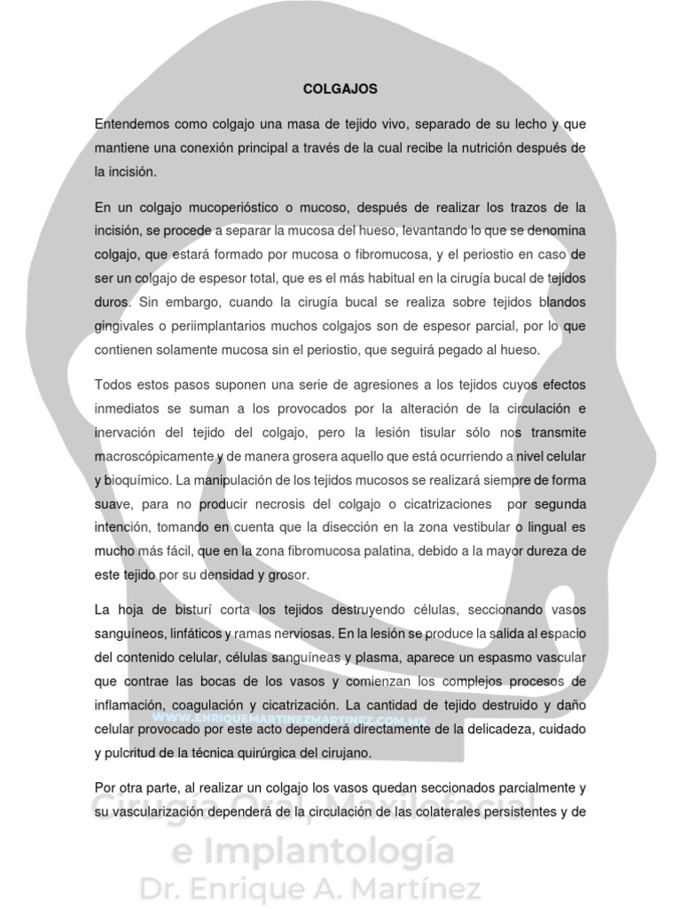 Entendemos como colgajo una masa de tejido vivo, separado de su lecho y que