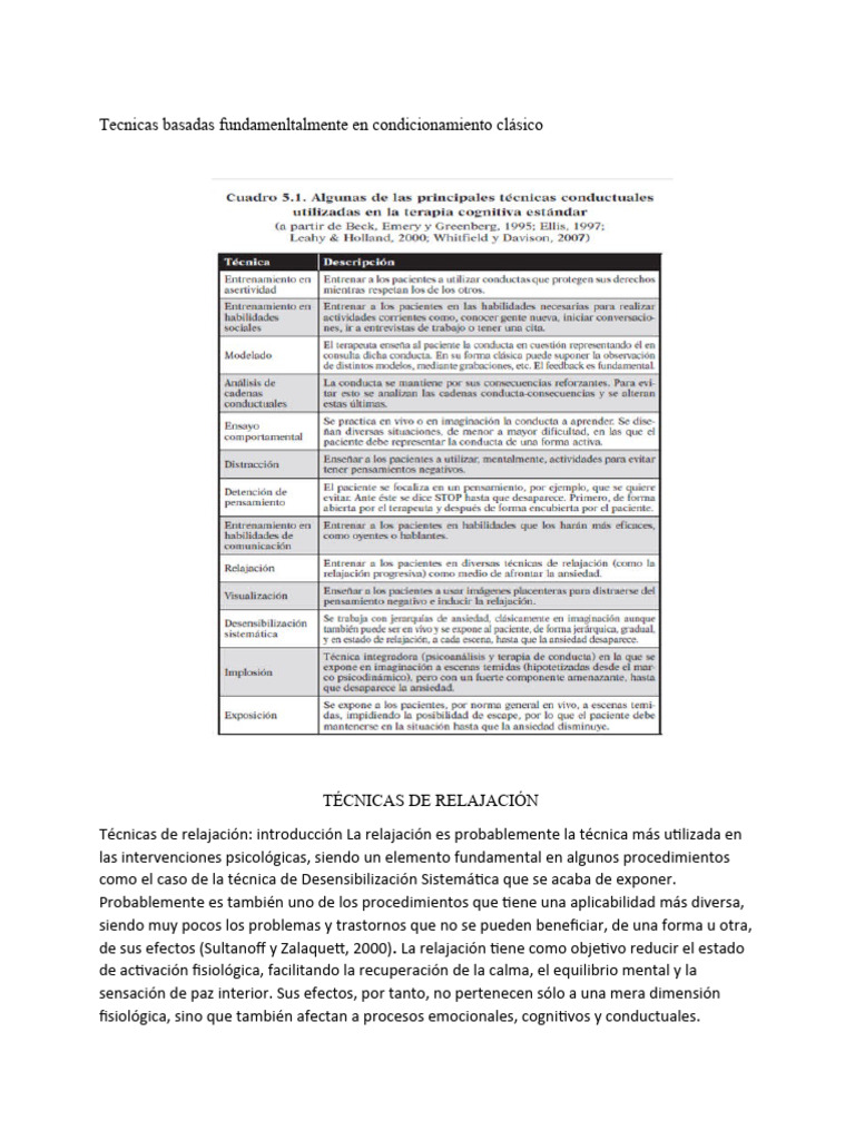 Tecnicas basadas fundamenltalmente en condicionamiento clásico