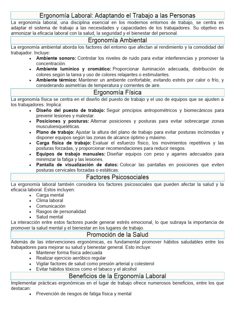 La ergonomía laboral también considera los factores psicosociales que pueden afectar la salud y la
