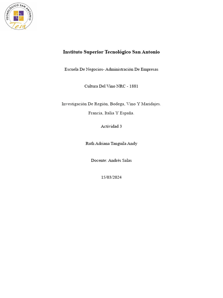 Investigación De Región, Bodega, Vino Y Maridajes.