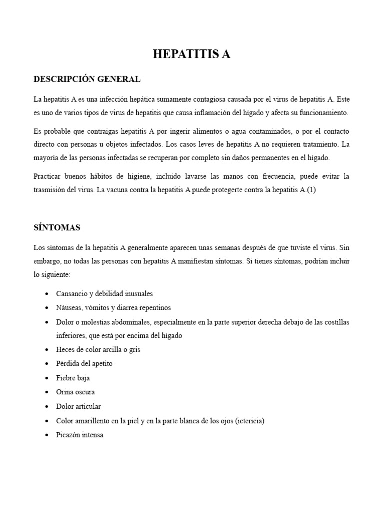 directo con personas u objetos infectados. Los casos leves de hepatitis A no requieren tratamiento. La
