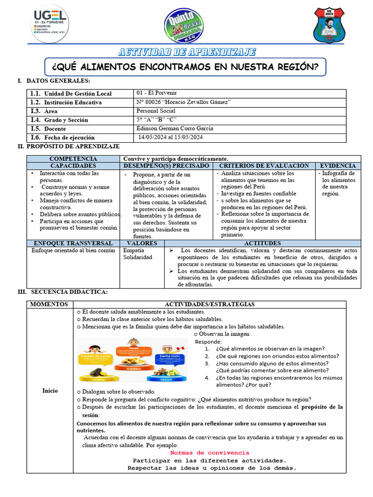 [Link]ón Educativa N° 80026 “Horacio Zevallos Gámez”