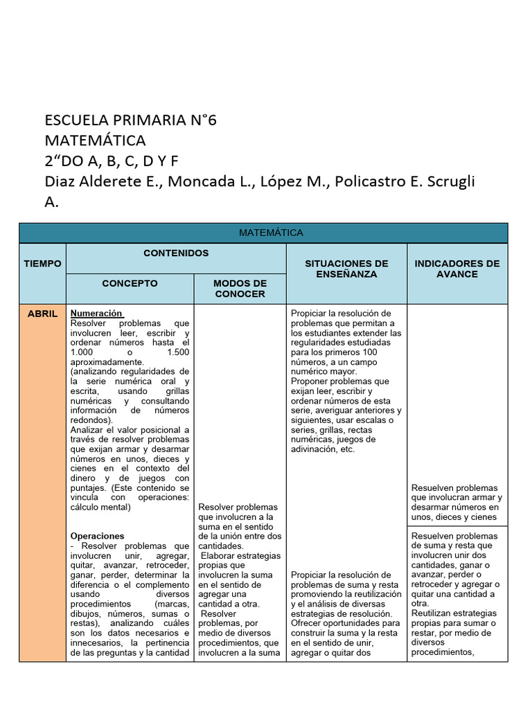 ABRIL Numeración Propiciar la resolución de