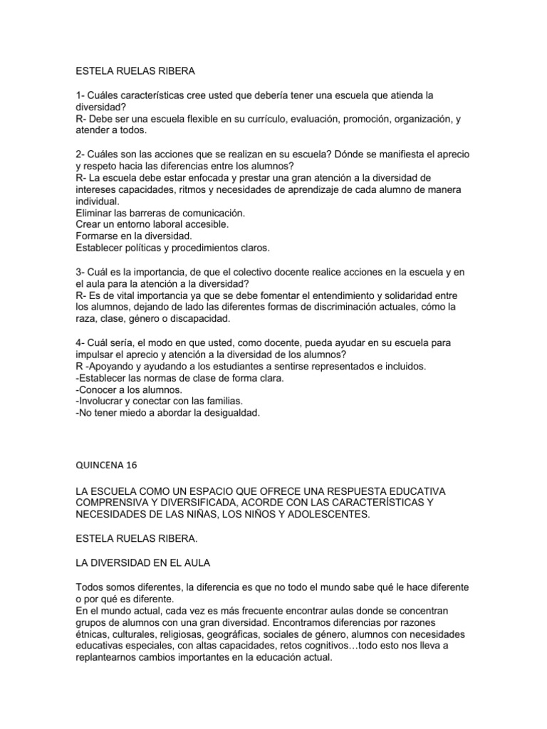 R- La escuela debe estar enfocada y prestar una gran atención a la diversidad de