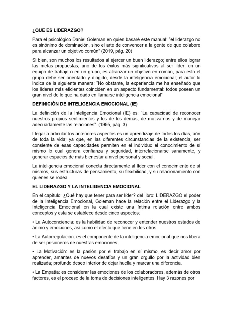 Para el psicológico Daniel Goleman en quien basaré este manual: “el liderazgo no