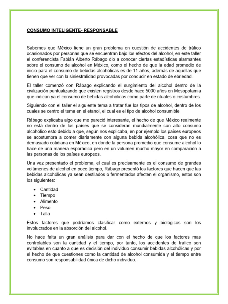 sobre el consumo de bebidas alcohólicas que tengan como punto central las