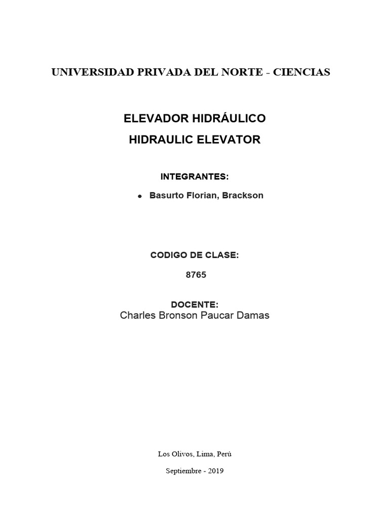 El presente proyecto se centra en el estudio, cálculo y validación de un elevador hidráulico