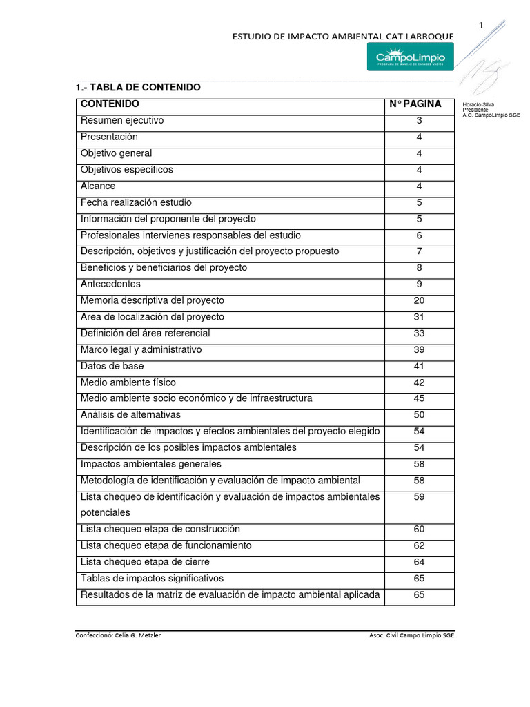 de impacto ambiental de cualquier proyecto. 2017