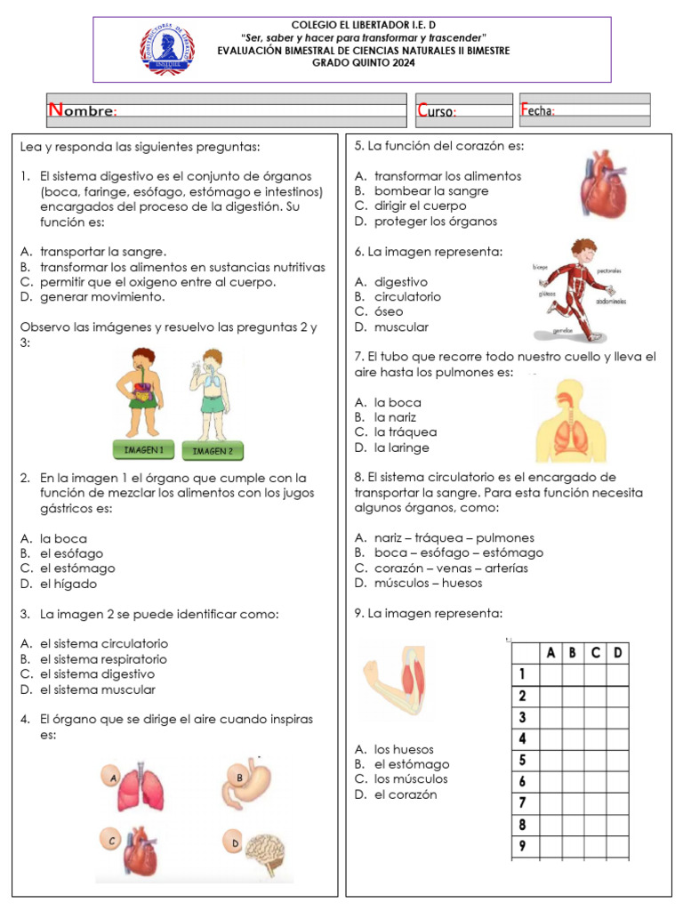 EVALUACIÓN BIMESTRAL DE CIENCIAS NATURALES II BIMESTRE
