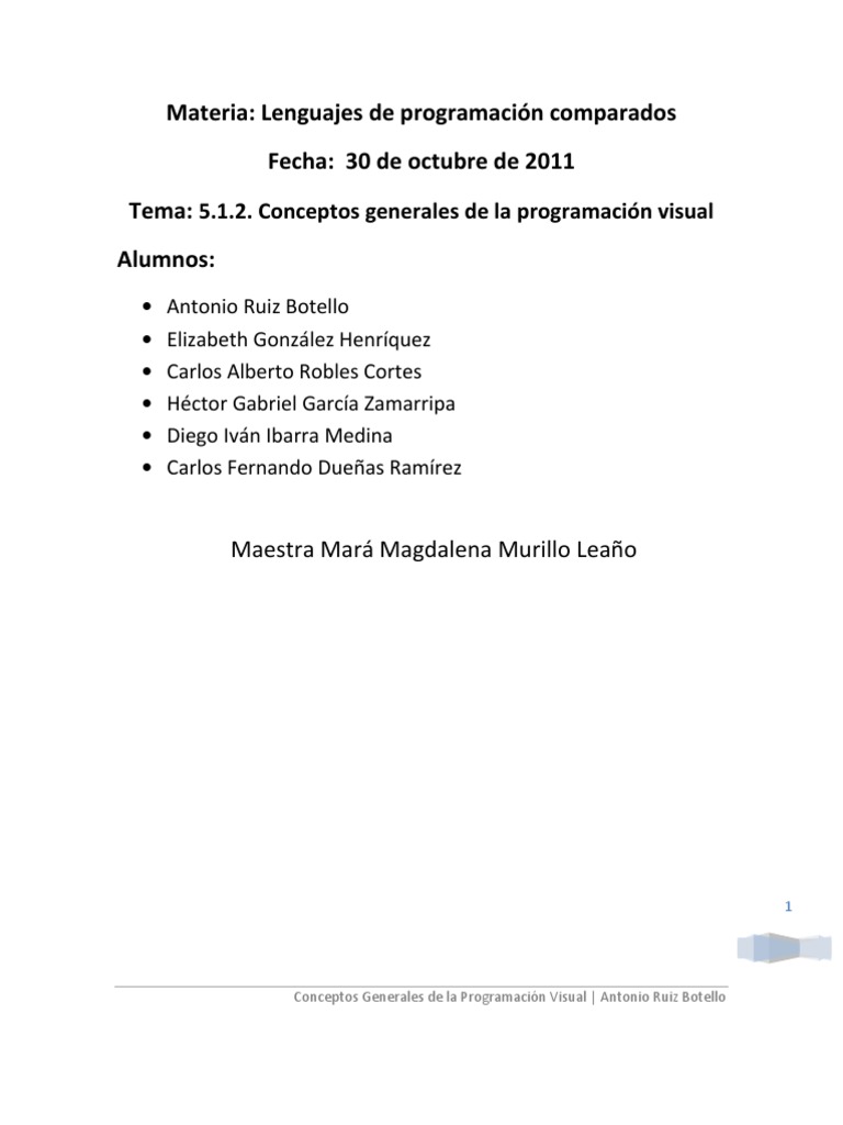 Conceptos generales de la programacin visual Alumnos: