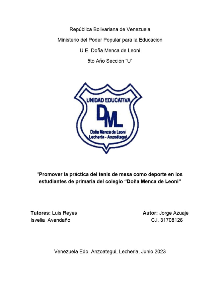 donde se promueva este deporte en la U.E. Doña Menca de Leoni.