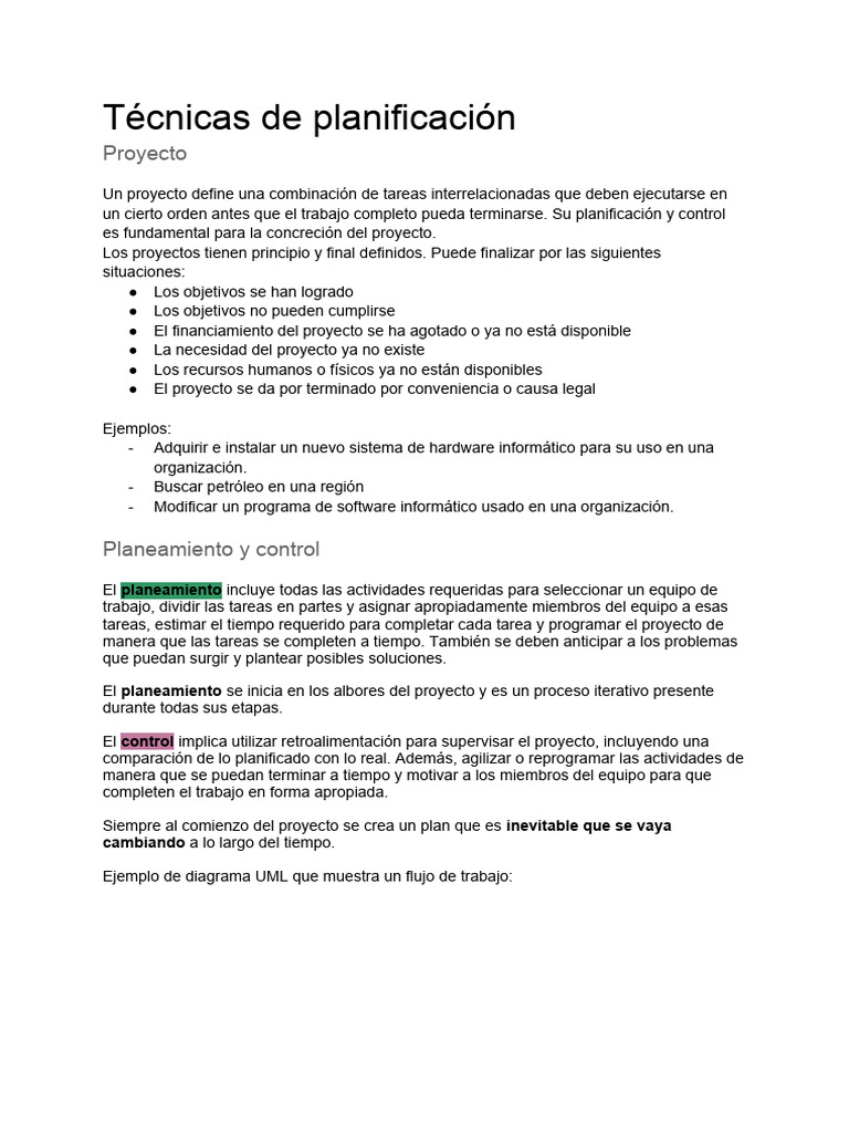 El planeamiento se inicia en los albores del proyecto y es un proceso iterativo presente