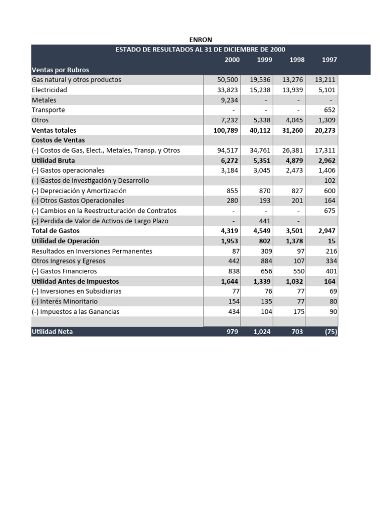 ESTADO DE RESULTADOS AL 31 DE DICIEMBRE DE 2000