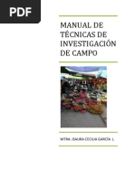 Cuestiones de Investigacin: Representan las facetas de un dominio emprico que el investigador desea investigar de forma ms profunda. Los interrogantes determinan los mtodos y tcnicas a emplear en el diseo de la investigacin. La pluralidad metodolgica permite tener una visin ms global y holstica del objeto de estudio, pues cada mtodo nos ofrecer una perspectiva diferenteson los datos cuantitativos los que se incorporan en un estudio cualitativo. 2.2. El Trabajo de Campo La investigacin cualitativa ser todo lo buena que lo sea el investigador. Debe estar preparado para confiar en el escenario; ser paciente y esperar hasta que sea aceptado por los informantes; ser flexible y tener capacidad de adaptacin y ser capaz de rerse de s mismo