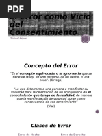 Error es vicio de consentimiento ya que todo A.J debe motivarse en un conocimiento de la realidad. Si dicho