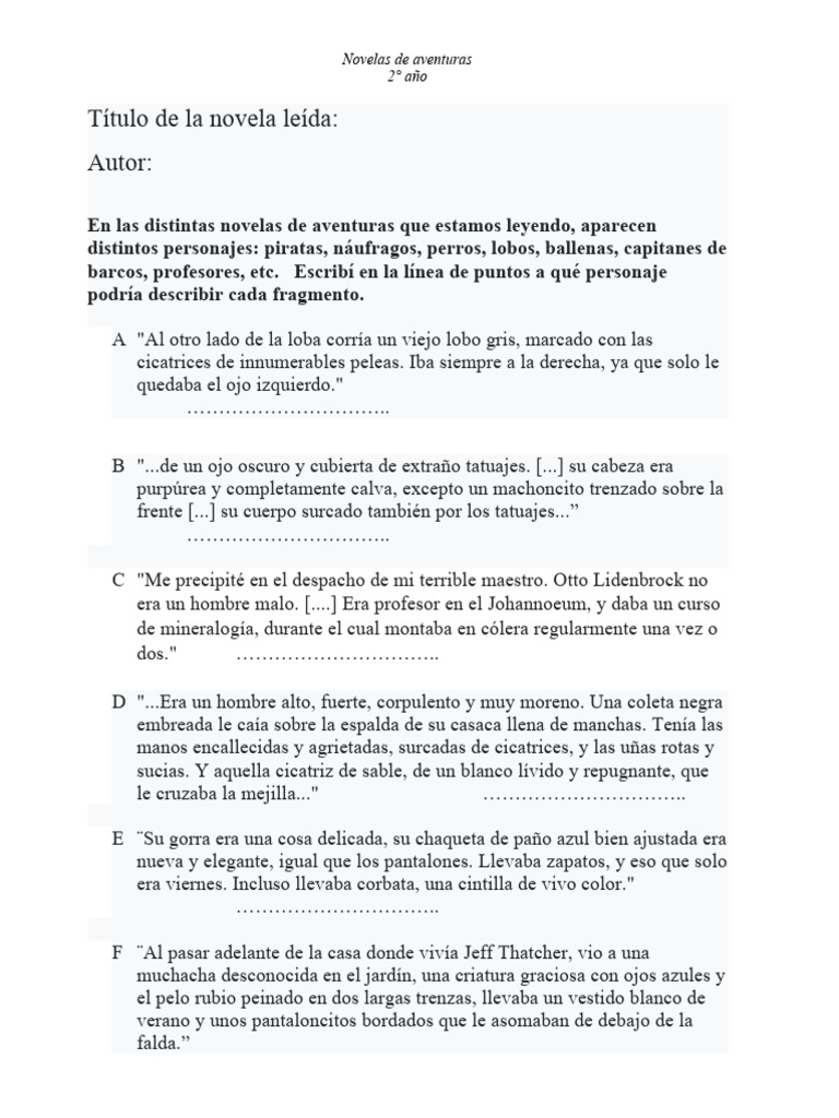 barcos, profesores, etc. Escribí en la línea de puntos a qué personaje