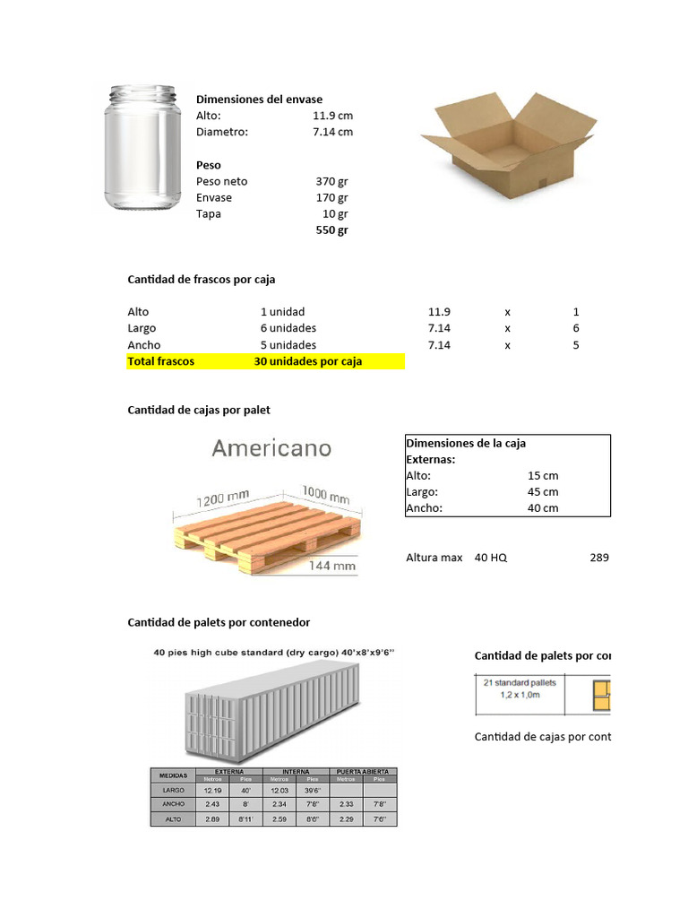 Cantidad de frascos por contenedor 45360 unidades Peso total solo de las cajas