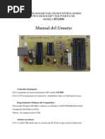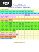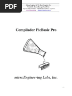Este manual no es un tratado completo del lenguaje BASIC. Describe el conjunto de instrucciones del micro PIC y brinda ejemplos de cmo utilizarlo. Si no est familiarizado con la programacin de BASIC , deber obtener un libro sobre dicho tema. O intentarlo directamente. BASIC est diseado como un lenguaje fcil de utilizar y, hay ejemplos adicionales de programas en el disco que pueden ayudarlo a comenzar. La prxima seccin de este manual abarca la instalacin del PBP y la escritura del primer programa. Siguiendo a esto, una seccin que describe diferentes opciones para la compilacin de programas. Despus son explicadas las bases de la programacin , seguidas por una seccin de referencia en donde cada comando del PBP es detallada en una lista. La seccin de referencia muestra cada prototipo de comando, una descripcin del comando y algunos ejemplos. Las llaves ({}), indican los parmetros opcionales. El resto del manual, provee informacin para programadores avanzados - todo el trabajo interno que el compilador hace. INDICE