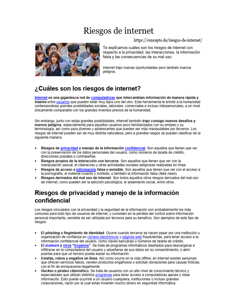 Riesgos derivados del mal uso de internet. Son todos aquellos otros riesgos derivados del mal uso
