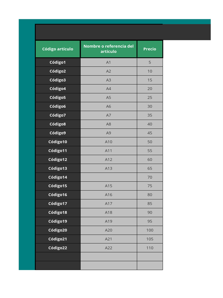 Código artículo Precio