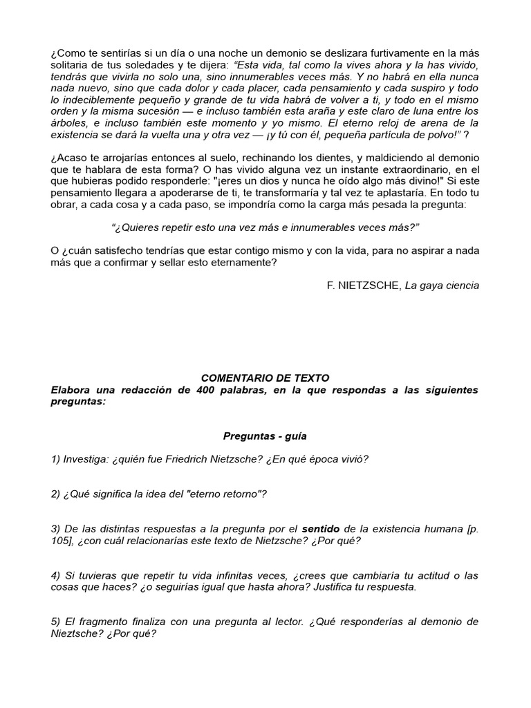 105], ¿con cuál relacionarías este texto de Nietzsche? ¿Por qué?