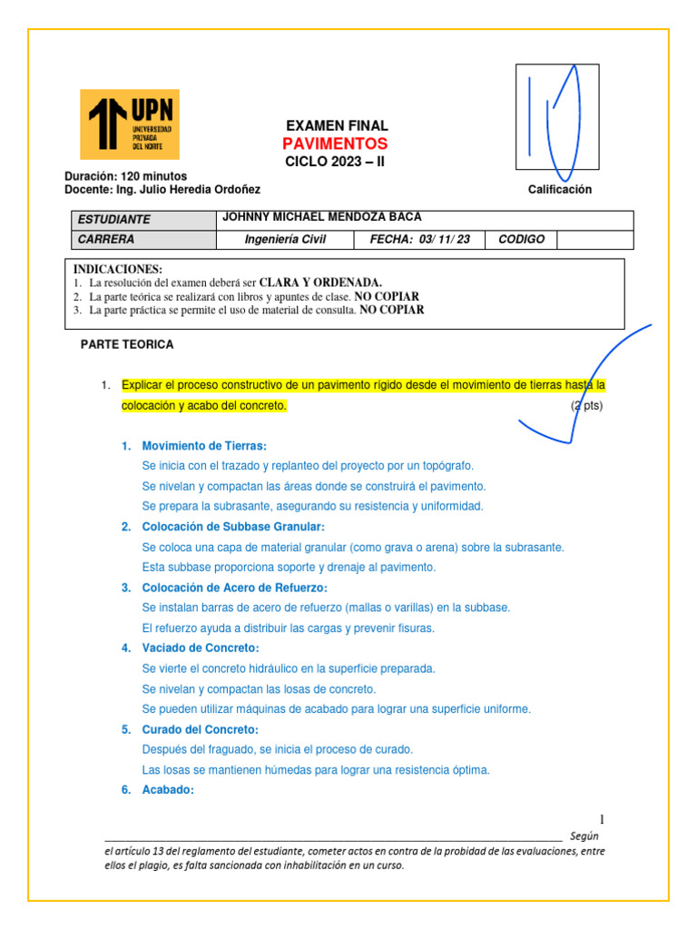 1. Explicar el proceso constructivo de un pavimento rígido desde el movimiento de tierras hasta la