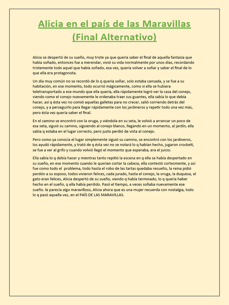 gato eran felices, Alicia despertó de su sueño, viendo q había terminado, lo q quería haber