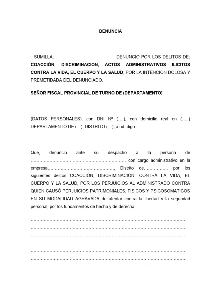 SUMILLA: DENUNCIO POR LOS DELITOS DE: