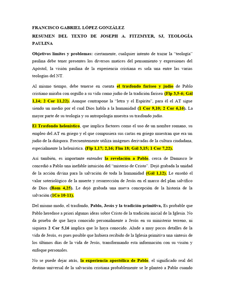 RESUMEN DEL TEXTO DE JOSEPH A. FITZMYER, SJ, TEOLOGÍA