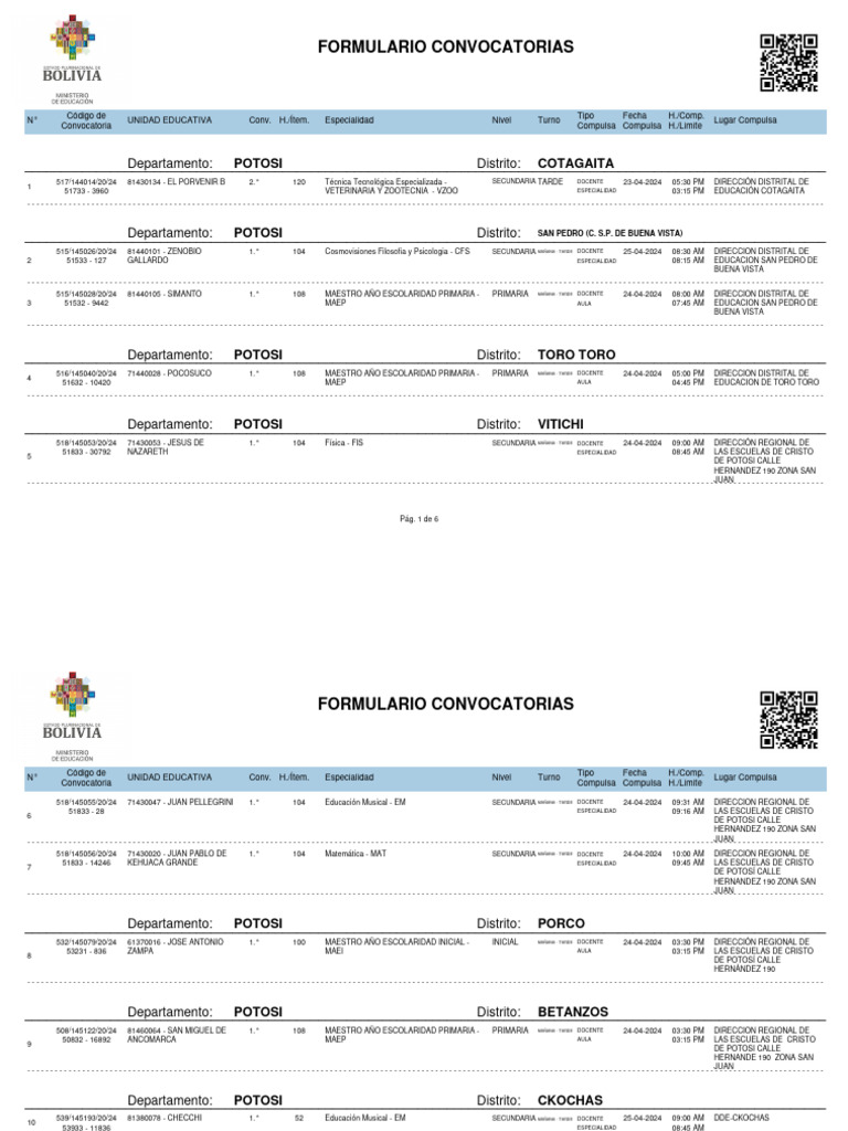530/145126/20/24 81370072 - PULACAYO A 1.° 40 Educación Física y Deportes - EFD SECUNDARIA MAÑANA - TARDE DOCENTE 25-04-2024 04:00 PM DIRECCION DISTRITAL DE