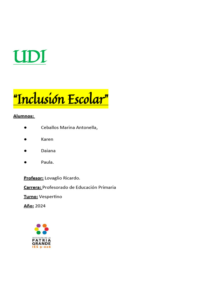 sienta las bases de una escuela inclusiva, pero una escuela inclusiva que convive a diario con las