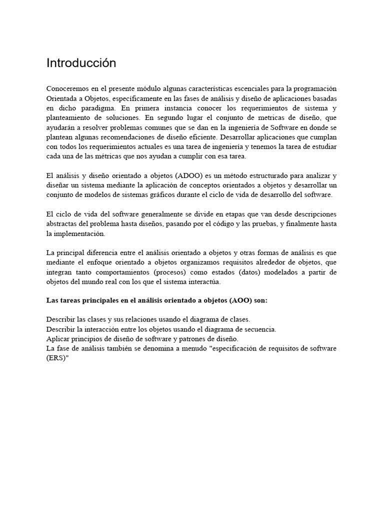 El análisis y diseño orientado a objetos (ADOO) es un método estructurado para analizar y