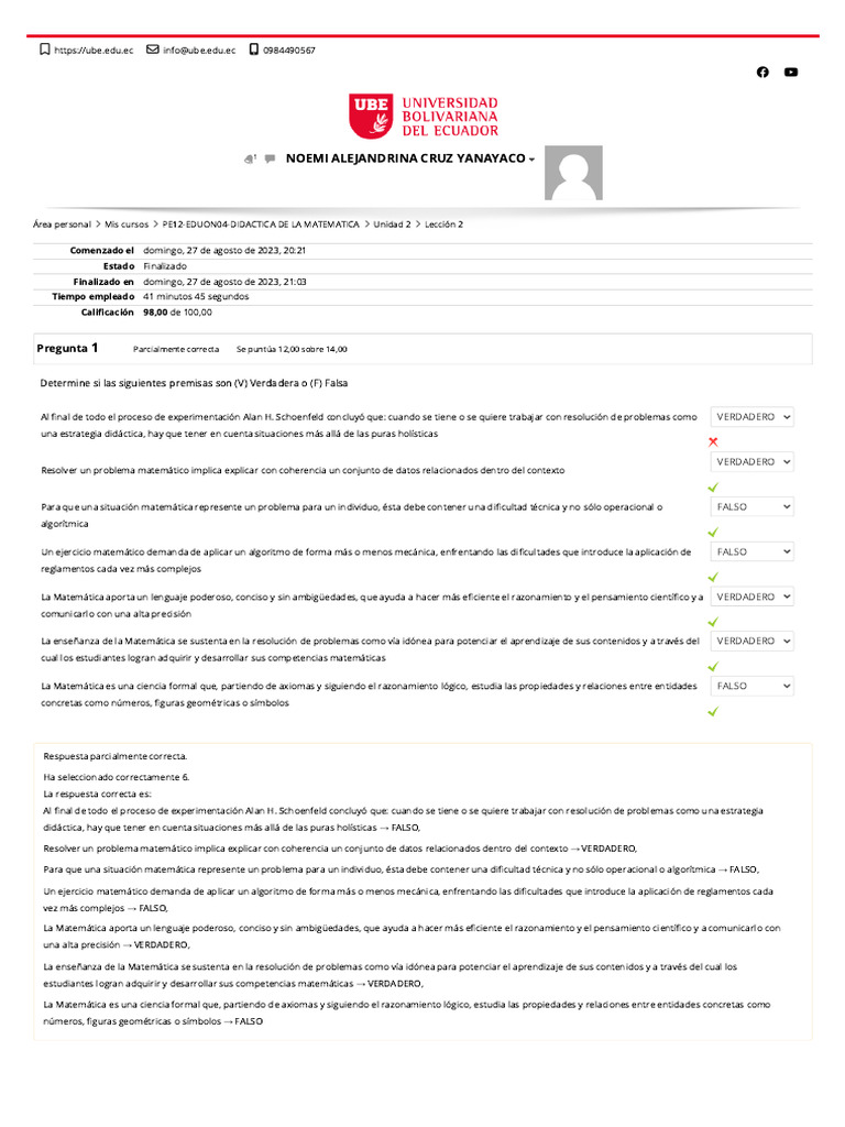 Área personal Mis cursos PE12-EDUON04-DIDACTICA DE LA MATEMATICA Unidad 2 Lección 2