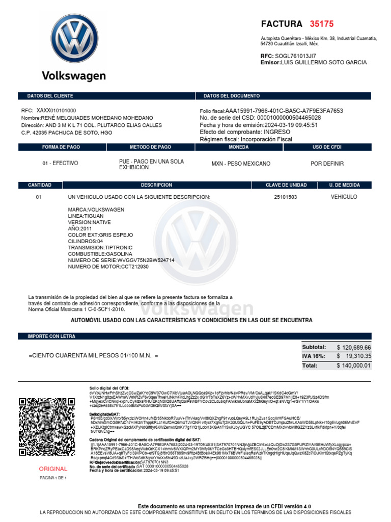 RFC: XAXX010101000 Folio fiscal:AAA15991-7966-401C-BA5C-A7F9E3FA7653