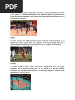 metros sobre la superficie de la pista de juego del que cuelga una red. La puntuación por cada canasta o cesta es