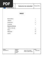 INTRODUCCIN Muchas de las aplicaciones de la vida cotidiana y del rea industrial en general estn vinculadas con la mecnica la cual es de gran importancia en un proceso productivo. En este proceso de bsqueda e investigaciones que satisfagan el diseo y clculos de engranajes rectos, sus mtodos de construccin y fabricacin sean los mas prcticos para poder disear confiablemente una transmisin de velocidades. Tambin el diseo de un reductor implica relacionar muchos aspectos como el dibujo tcnico con clculos de diseo y de resistencia de materiales, la eleccin de materiales segn los parmetros adecuados que aseguren un diseo confiable y seguro, obviamente teniendo en cuenta que un diseo depender de muchos factores relevantes que hacen que el diseador deba tomarlos en cuenta. Es por esto que todos los elementos componentes de una transmisin, como sus ejes, rodamientos, chavetas, engranajes y carcasa deben estar dentro de rangos permisibles de diseo, no por ende realizare una innovaciones en cuanto a la geometra de mis elementos que corresponden a mi dibujo, con el fin de encontrar respuesta a la necesidad que el profesor solicita Para terminar, mencionare que los engranajes (pin y corona) son los que estn expuestos a un esfuerzo muy grande, por ser los encargados de realizar la mayor parte del trabajo de un reductor. Se vern expuestos al contacto de flexin en sus dientes y sern calculados con materiales que cumplan con una adecuada composicin qumica, dureza rockwell y que los tratamientos trmicos aplicados estn dentro del rango de temperaturas adecuado para que de este modo se garantice un diseo confiable y eficiente.