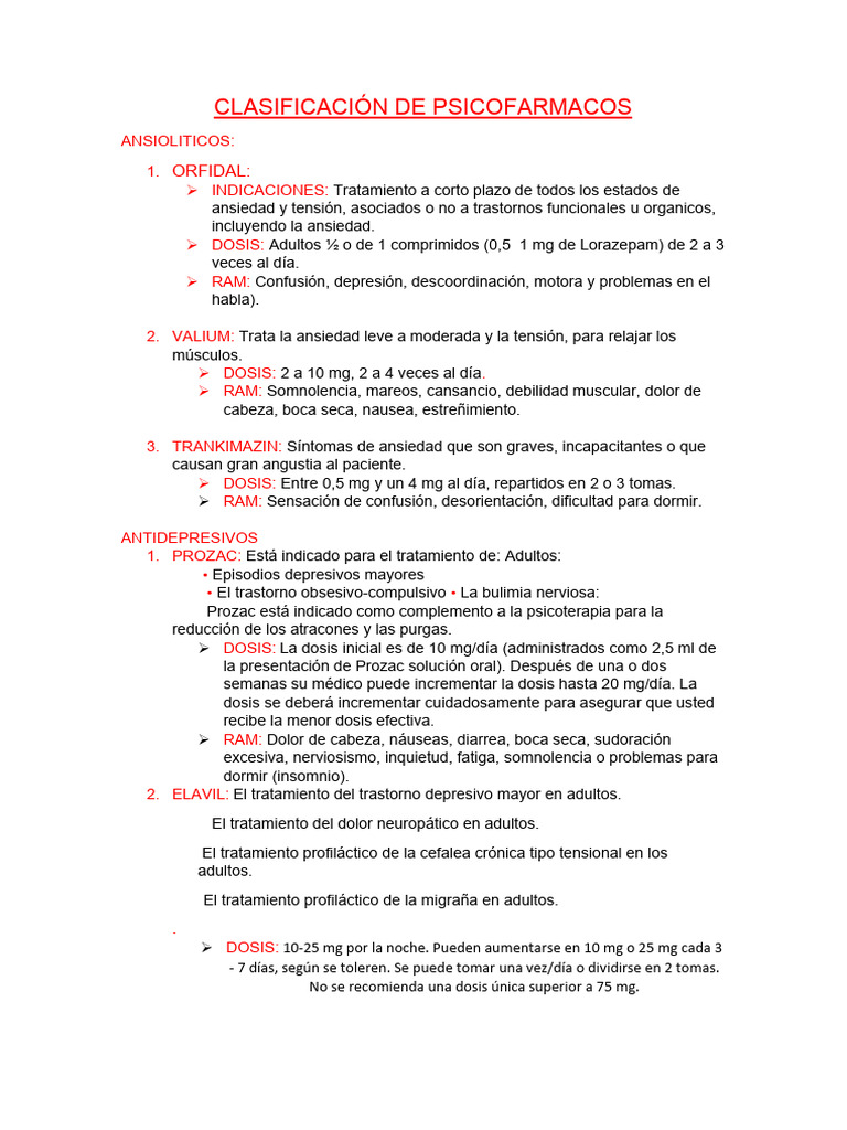 DOSIS: 10-25 mg por la noche. Pueden aumentarse en 10 mg o 25 mg cada 3