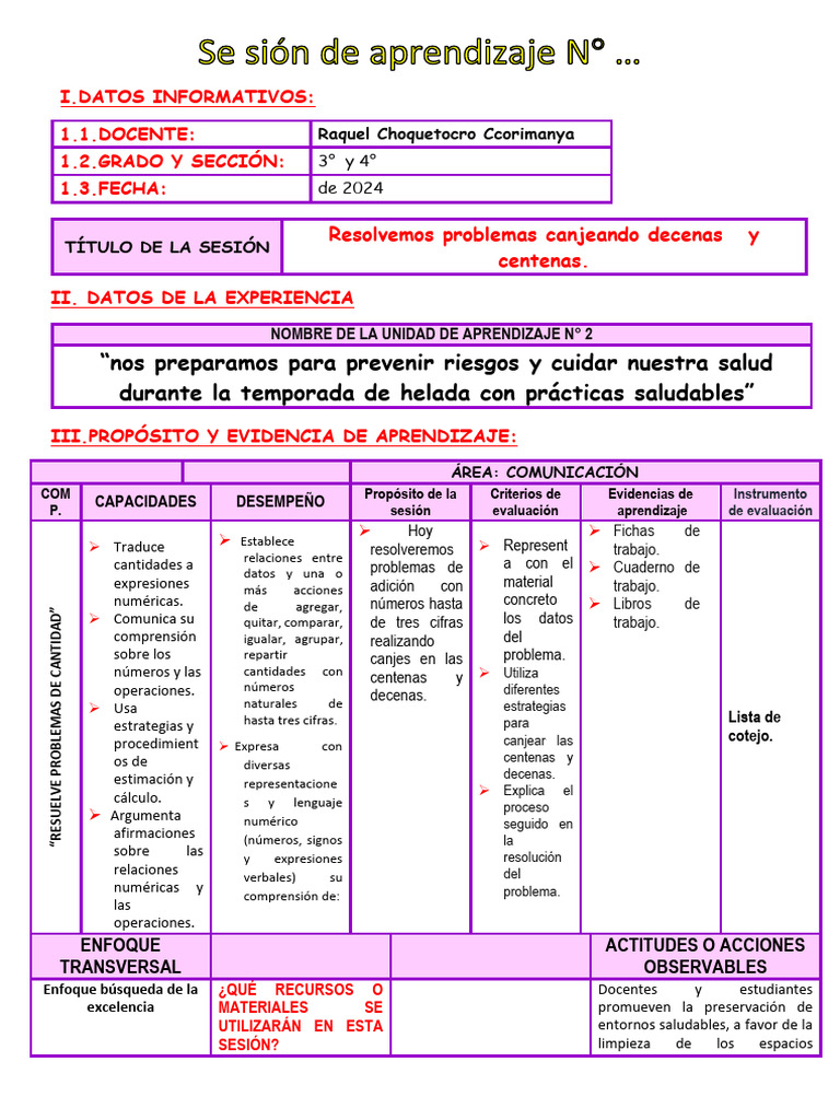 1.2.GRADO Y SECCIÓN: 3° y 4°