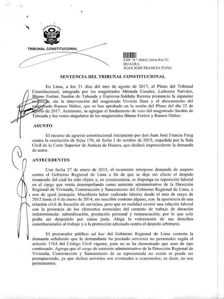 sto de 2017. Asimismo, se agregan el fundamento de voto del magistrado Sardón de