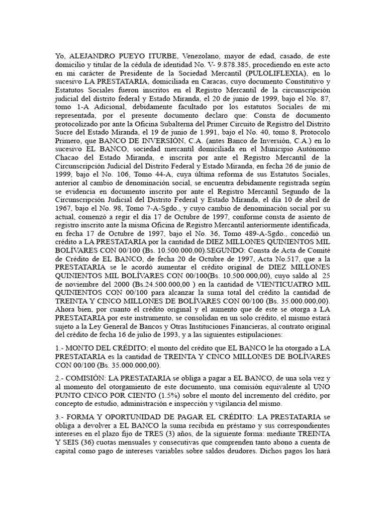 INVERSIÓN, C.A. (antes Banco de Inversión Consolidado, C.A.) concedió un crédito a