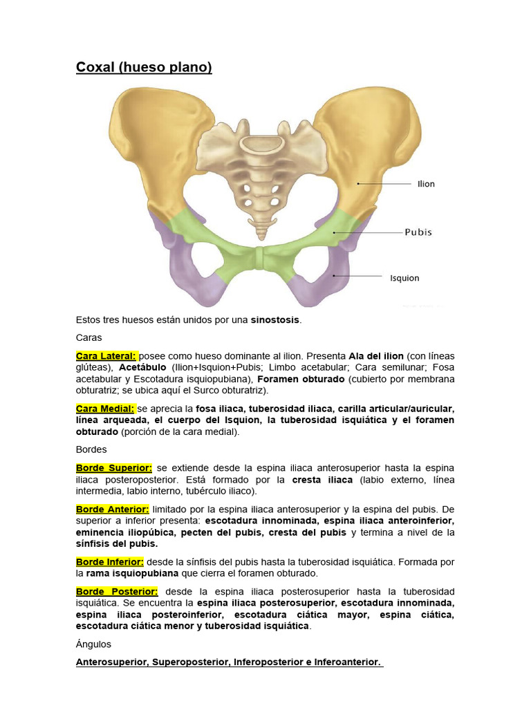 superior a inferior presenta: escotadura innominada, espina iliaca anteroinferior,