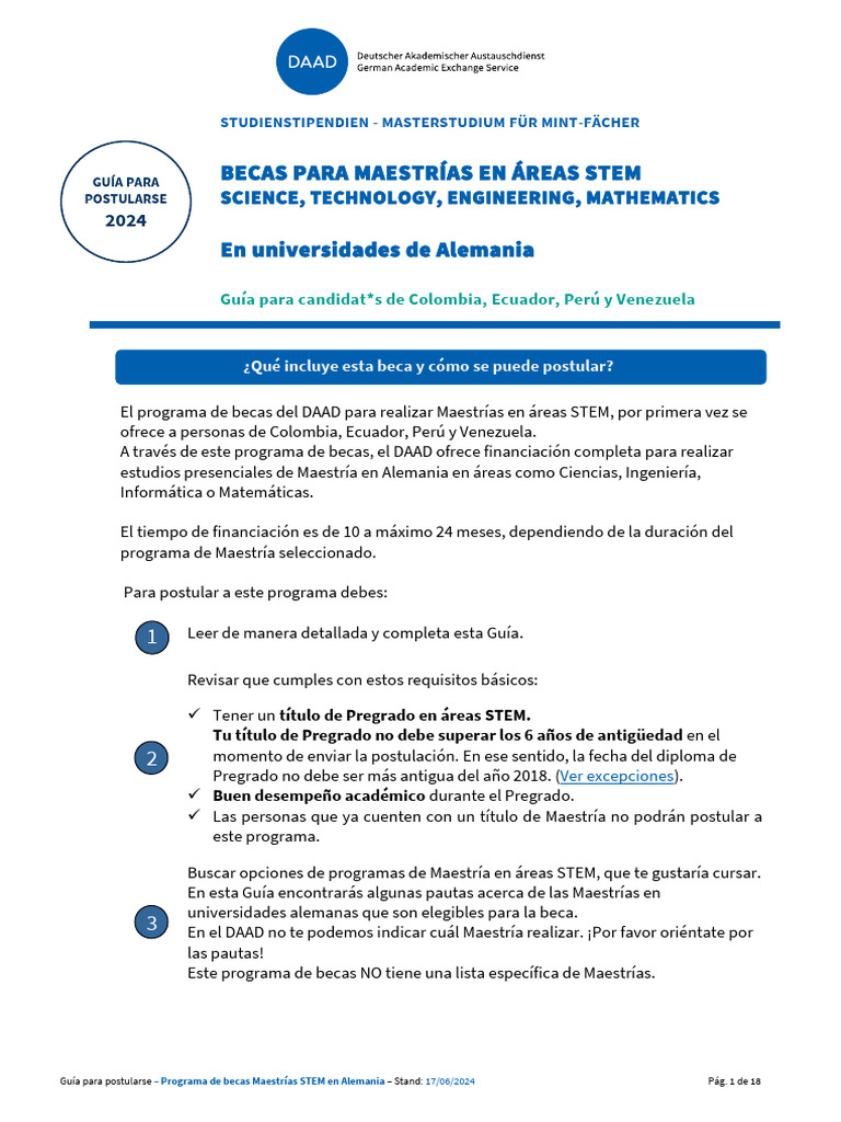 Guía para postularse – Programa de becas Maestrías STEM en Alemania – Stand: 17/06/2024 Pág. 1 de 18