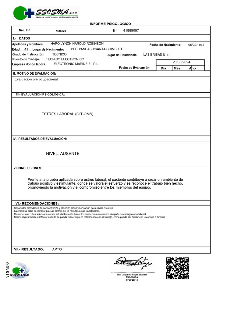 INFORME PSICOLÓGICO