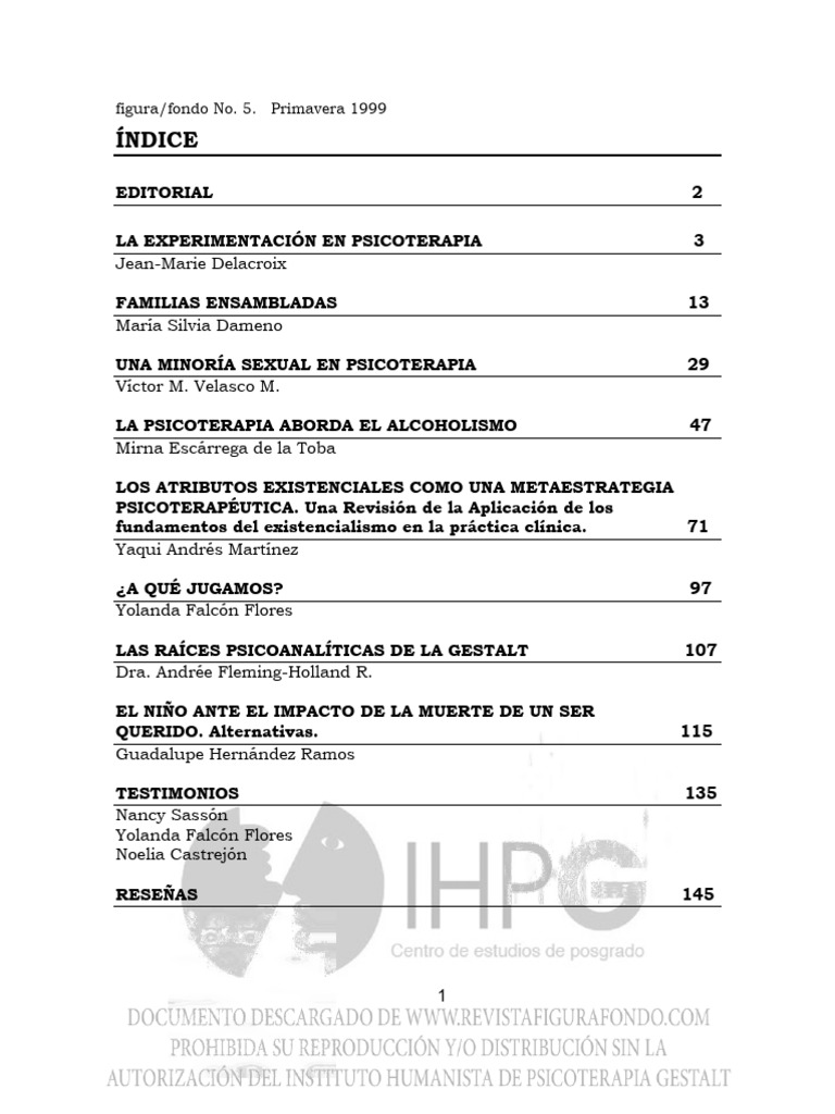 la experimentación en psicoterapia gestalt, y de una revisión del