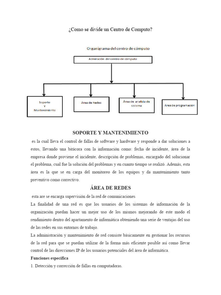 área es la que se en carga del monitoreo de los equipos y da mantenimiento tanto