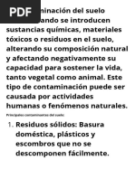 ➢ Contaminación del suelo: se produce por la liberación de sustancias tóxicas en la capa