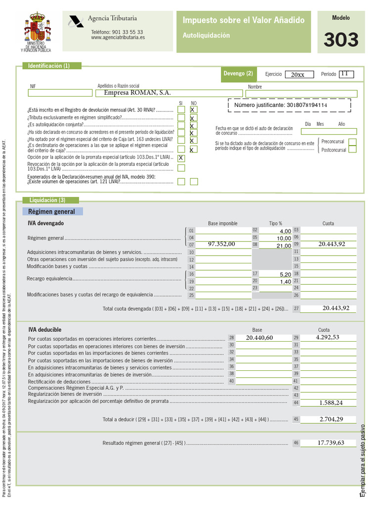 del criterio de caja? ................................................................................. X período indique el tipo de autoliquidación ....................... Postconcursal