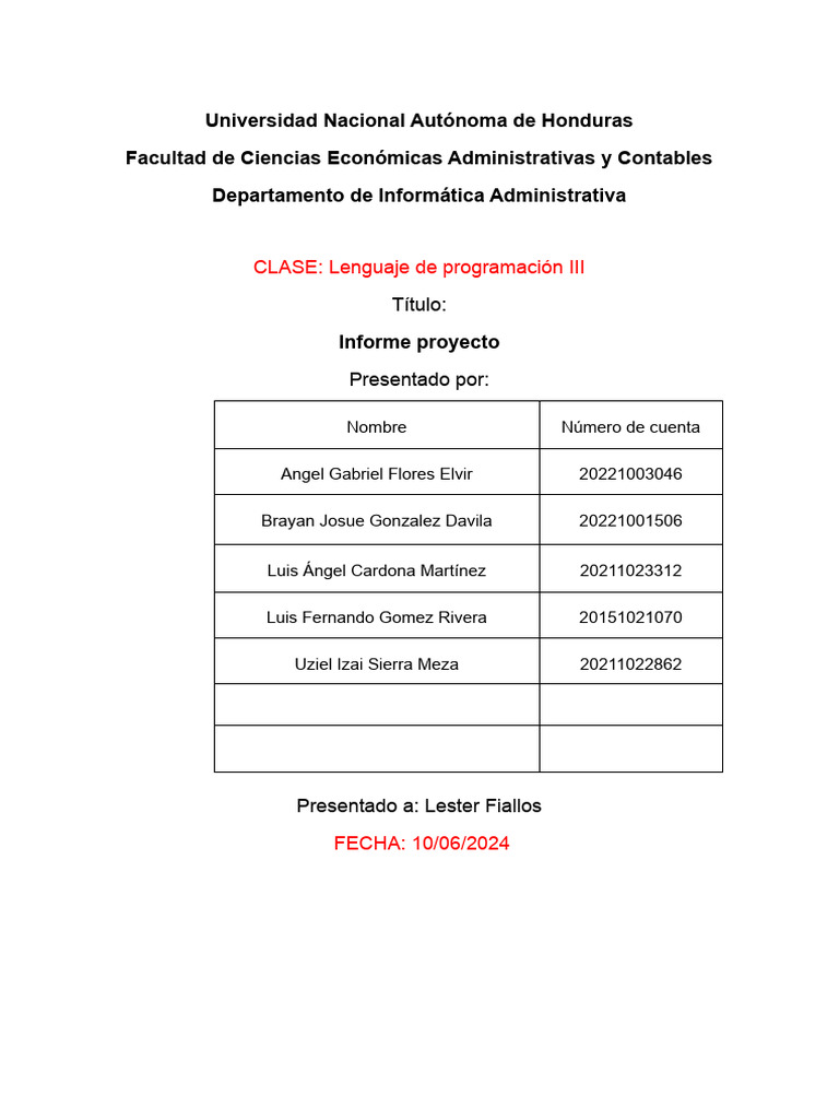 Presentado a: Lester Fiallos
