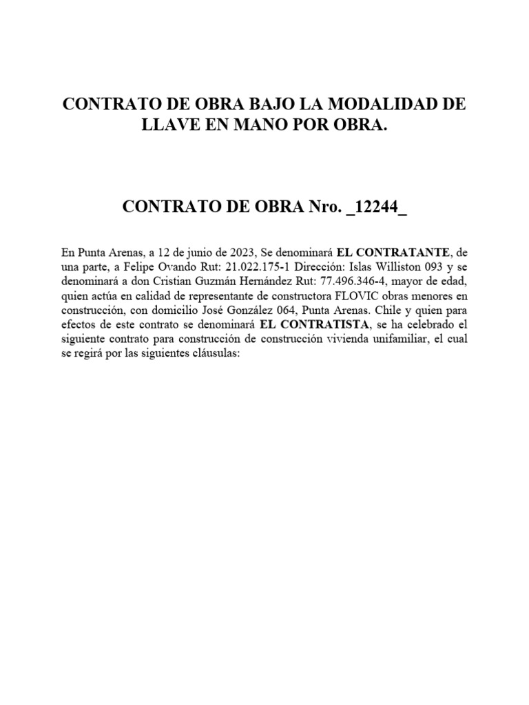 siguiente contrato para construcción de construcción vivienda unifamiliar, el cual