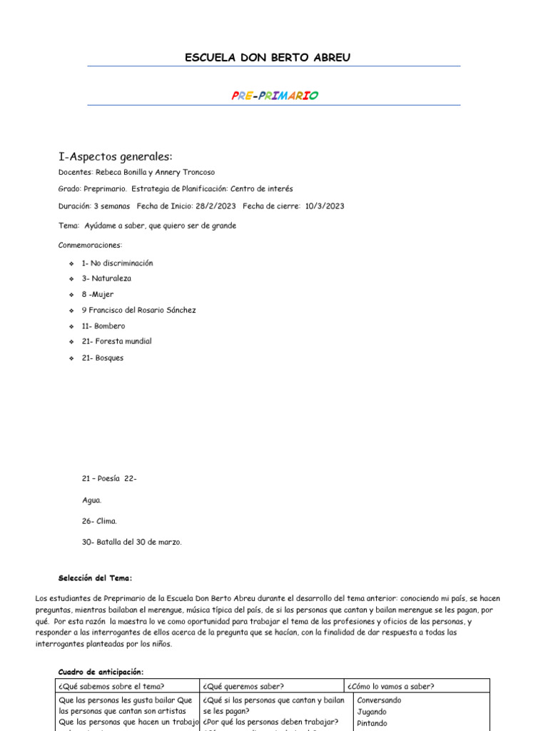 qué. Por esta razón la maestra lo ve como oportunidad para trabajar el tema de las profesiones y oficios de las personas, y